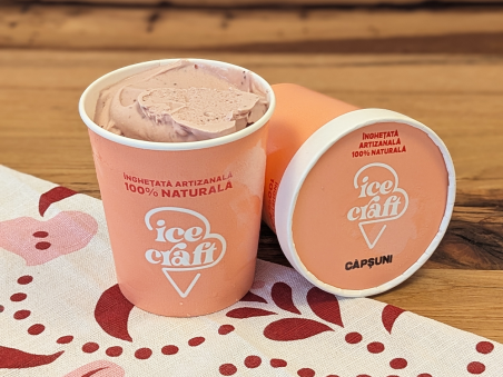 Un clasic îndrăgit: înghețata de căpșuni, cu un gust intens și autentic, obținut exclusiv din...
