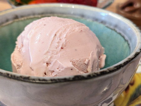 Un clasic îndrăgit: înghețata de căpșuni, cu un gust intens și autentic, obținut exclusiv din căpșuni proaspete și un strop de zeamă de lămâie.