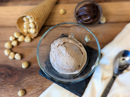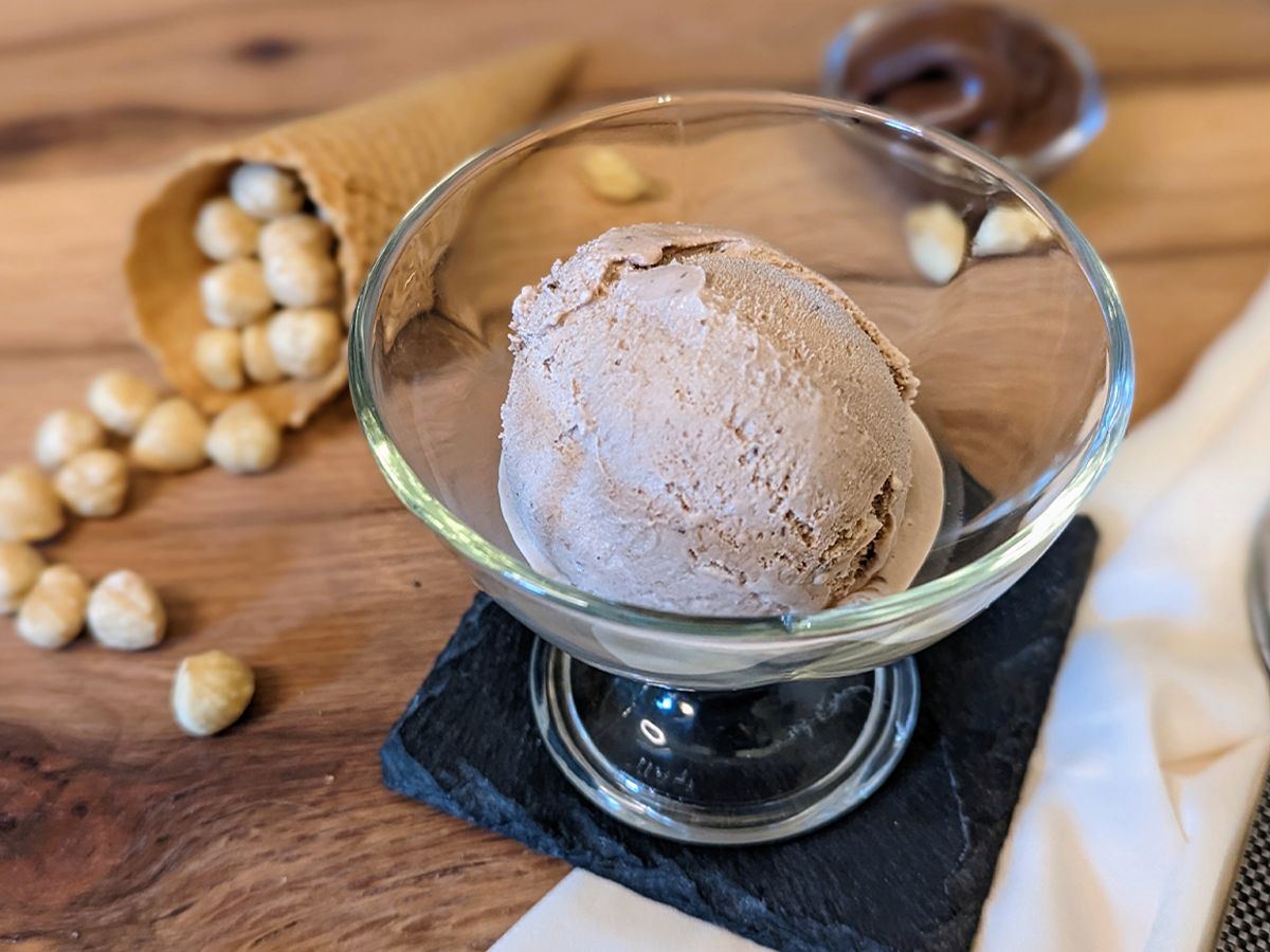 Lapte 45.8%, smantana 22.9%, zahar, galbenus de ou, alune de pădure 5.5%, cacao 1.1%.